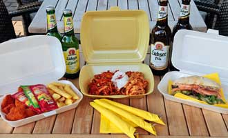 Sie können sich Ihr Essen bei uns vorbestellen (Speisekarte + Getränkekarte sind online einsehbar) und dann einfach abholen.
