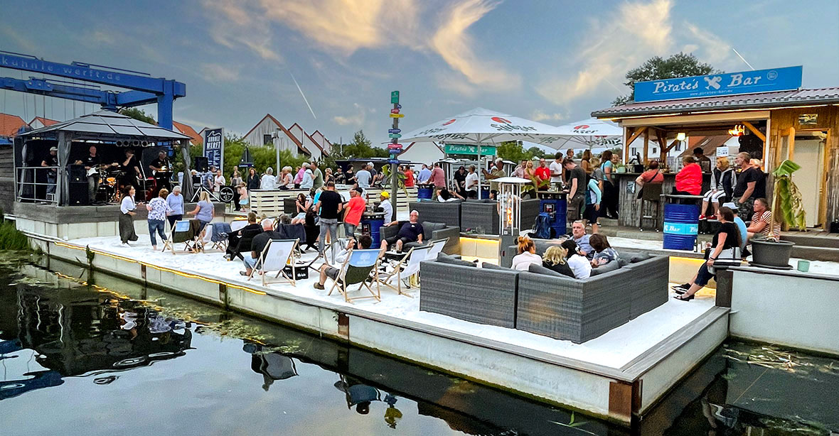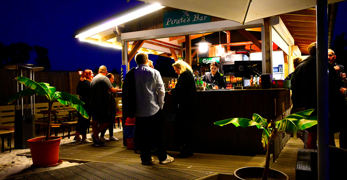 Lockere private Feiern, wer träumt nicht davon Geburtstag, Jubiläum, Hochzeit, Taufe, Familienfeier, Abschlussfeier, Mottoparty in einer Beachbar zu feiern. In der Pirate‘s Bar finden bis zu 130 Personen Platz (inkl. Stehplätze): Im weißen Sand auf unseren Loungemöbeln, auf den Bierbänken und im neuen überdachten Bereich direkt über dem Wasser mit einem tollen Blick in die Marina. Wenn das Wetter doch zu ungemütlich wird, können wir bei entsprechender Buchung eine Ausweichmöglichkeit im Captain‘s Inn anbieten.