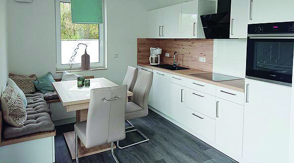 Durch den Einsatz qualitativ hochwertiger Materialien im Innenausbau konnte eine maximale Nutzungsdauer und hoher Wohnkomfort erzielt werden, was für die dauerhafte Vermietung als Ferienwohnung von besonderer Bedeutung ist. Alle Apartments wurden wahlweise mit keramischen Bodenfliesen, Design-Belägen oder hochwertigem Laminat ausgestattet. Die Wände erhielten zusätzlich eine Vliesbeschichtung und wurden nach Vorstellungen des Käufers farbig gestaltet. Wir bieten eine hohe Flexibilität bei bedarfsgerechter Gestaltung nach Ihren Vorstellungen.