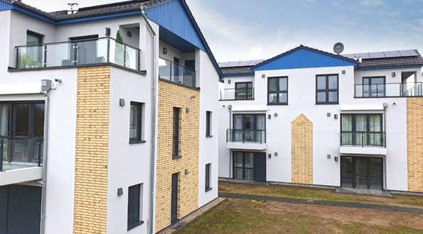Gesundes Wohnen mit hohem Komfort kombiniert mit einem sehr effizienten Energiekonzept für die Erzeugung von Wärme und Strom waren Leitbild bei der Entwicklung dieser Immobilie. Neben der traditionellen Massivbauweise zeichnen sich die Gebäude auch durch die Verwendung von natürlichen und ökologischen Baustoffen aus. So wurde zum Beispiel Holzwolle für die Wärmedämmung im Dach und an Teilen der Fassade verwendet und ein moderner Tonziegel für die Dacheindeckung.